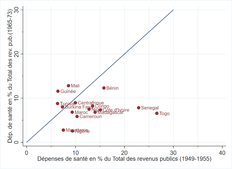 L’objectif de nos recherches en cours est de tenter de comprendre l’origine de ces choix budgétaires. Sont-ils dus à des contraintes de personnel ? Il est possible que, pour les pays décolonisés, il ait été plus facile et plus rapide de former des instituteurs que des personnels de santé qualifiés.
