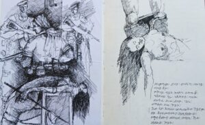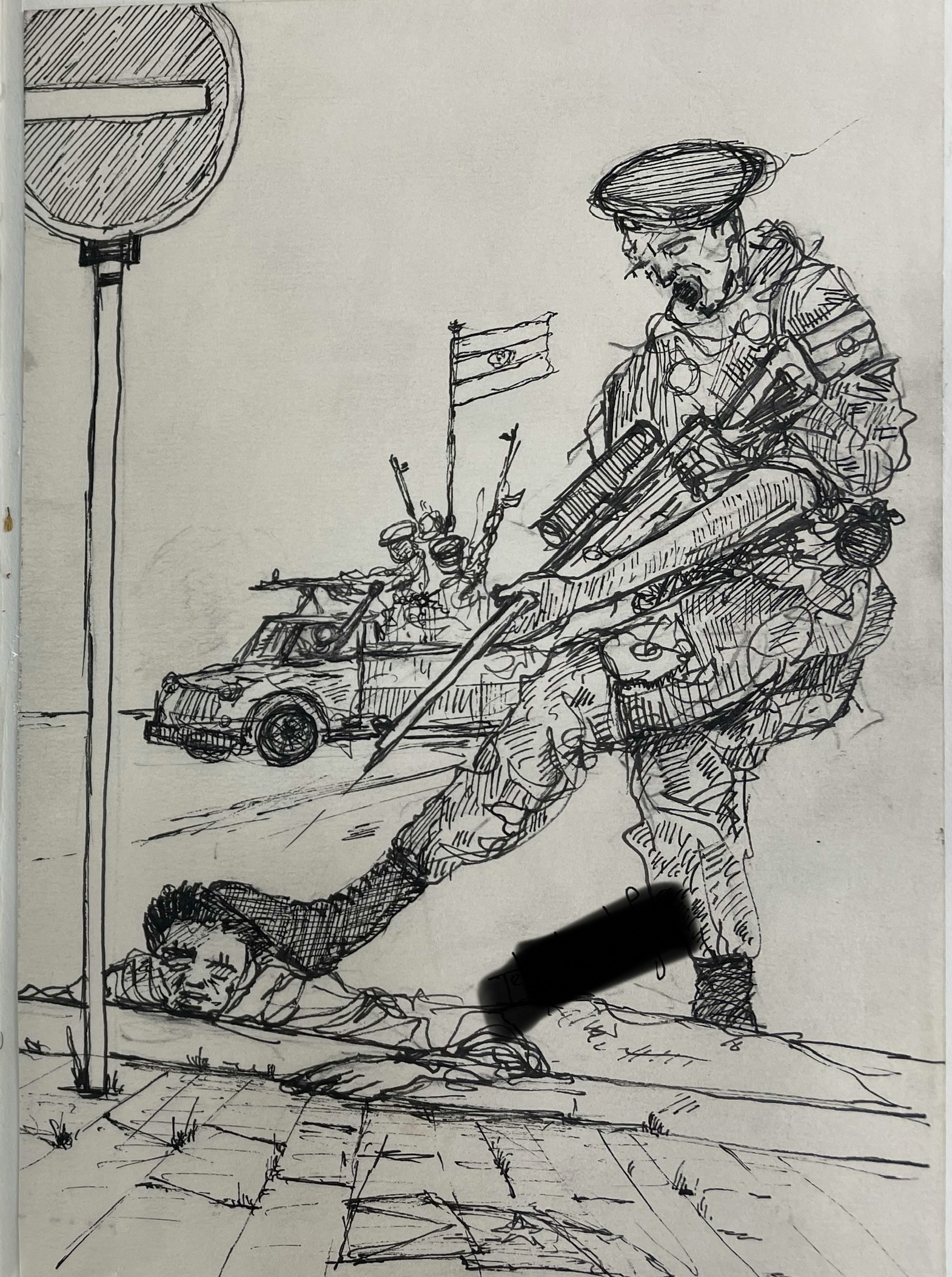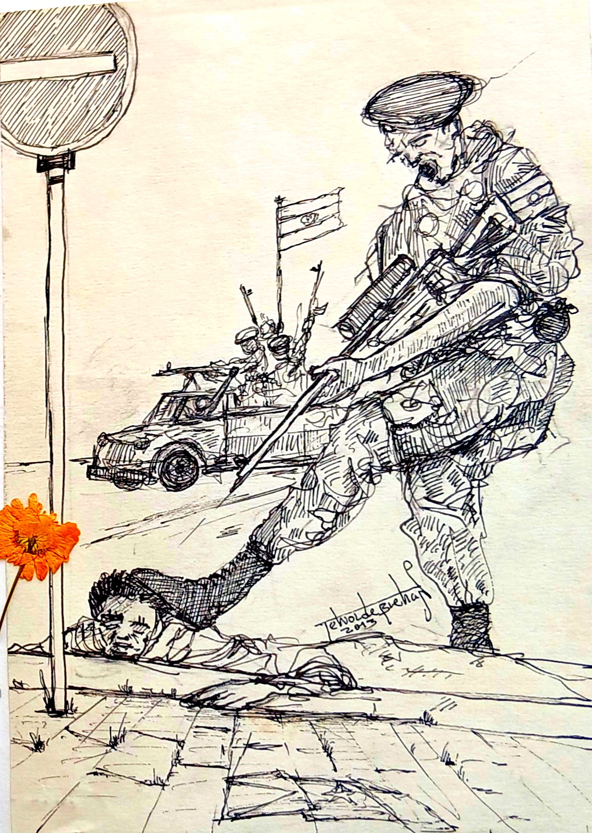 Alors que des bruits de bottes font craindre une reprise de la guerre du Tigray, qui a provoqué, il y a deux ans, un désastre humanitaire majeur dans la Corne de l’Afrique, Mondafrique publie des extraits d’un carnet de dessins croqués par un peintre de la région, exceptionnel témoignage sur les atrocités commises par l’armée éthiopienne. (Les dessins ont été recadrés pour masquer la signature de l’auteur, contraint de rester anonyme pour sa sécurité.)