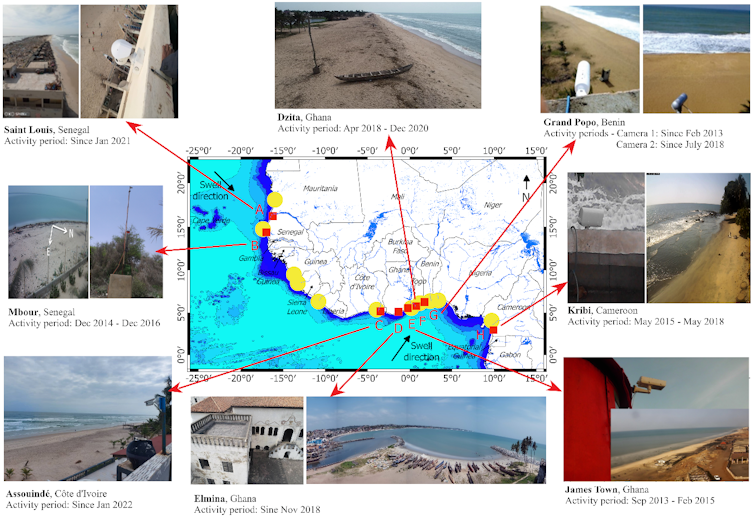 Pour ce faire, un réseau de caméras pour la surveillance des zones côtières est peu à peu mis en place depuis 2013 en Afrique centrale et de l’Ouest, aujourd’hui formé de huit stations installées dans cinq pays : Sénégal, Côte d’Ivoire, Ghana, Bénin, Cameroun.Les sites d’installation ont été choisis du fait de la forte vulnérabilité observée dans ces localités. Le rôle du réseau est de donner des informations complémentaires à celles collectées sur le terrain et par l’observation satellitaire, afin de mieux comprendre et prédire les risques.