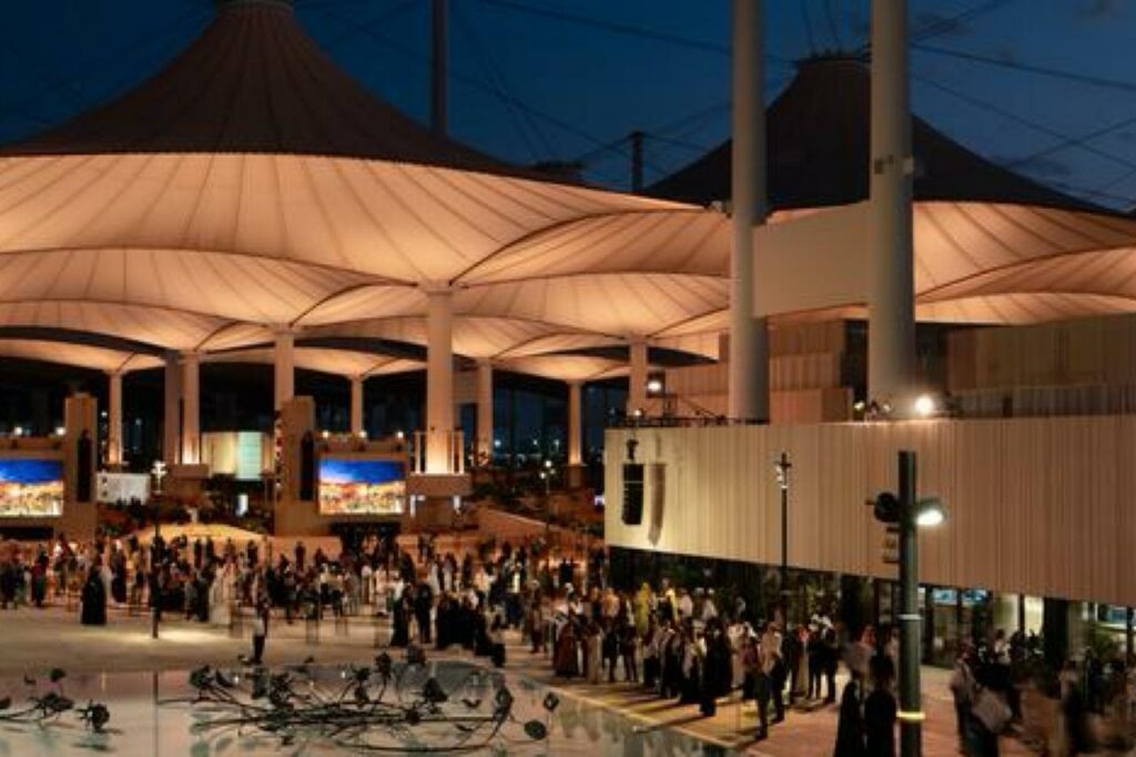 Julian Raby, historien de l’art et directeur artistique de l’exposition, souligne l’impact de cet emplacement : « Lors de la dernière édition, des pèlerins passaient d’un terminal à l’autre pour découvrir les pavillons. » L’édition inaugurale de 2023 avait attiré 600 000 visiteurs, une affluence proche de celle de la Biennale de Venise (700 000 en 2024). Cette année, l’événement ambitionne de dépasser le million d’entrées.
