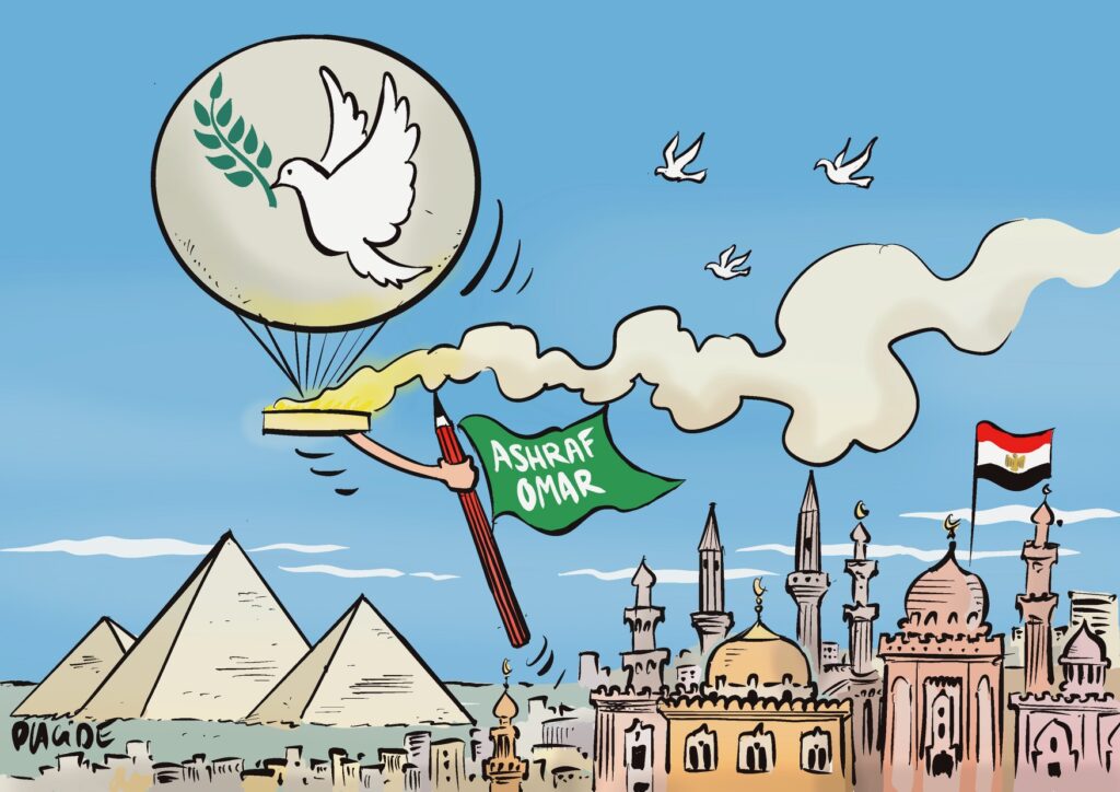 Dans la nuit du 21 au 22 juillet, à 1h30 du matin, au Caire, deux minibus se sont arrêtés devant le domicile d’Ashraf Omar, caricaturiste et traducteur contribuant à de nombreux médias, dont le média en ligne indépendant Mada Masr et, plus récemment, al-Manassa. C’est ce qu’ont dévoilé les images des caméras de surveillance consultées par son épouse Nada Mougheeth le lendemain matin.