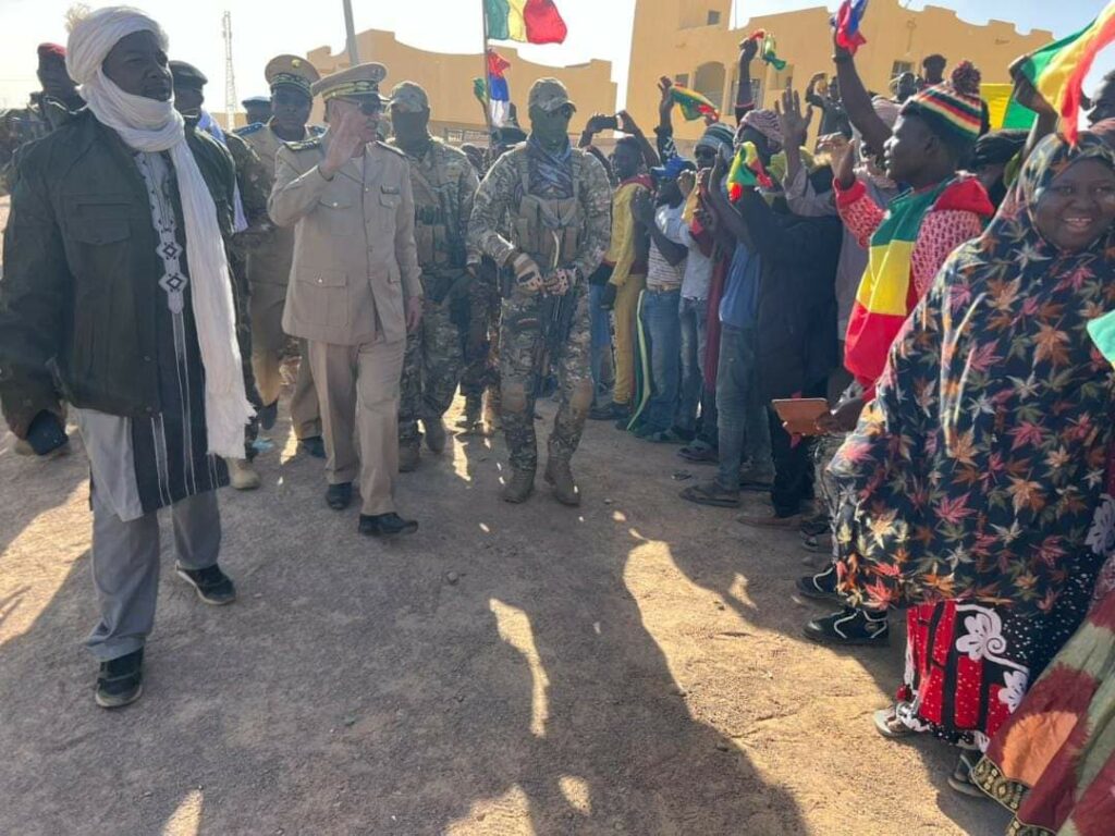 Le nouveau gouverneur a fait son entrée en uniforme militaire, acclamé par une foule brandissant des drapeaux maliens et escorté tantôt par des militaires maliens, tantôt par des mercenaires russes de Wagner, si l’on en croit les images qui circulent abondamment sur les réseaux sociaux du Mali.