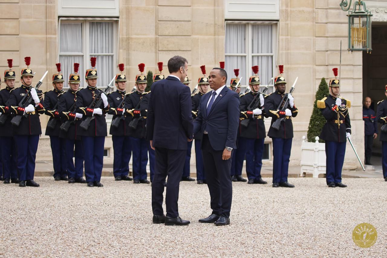 Emmanuel Macron et le colonel Michael Randrianarina à l’Élysée, le 24 février 2026.