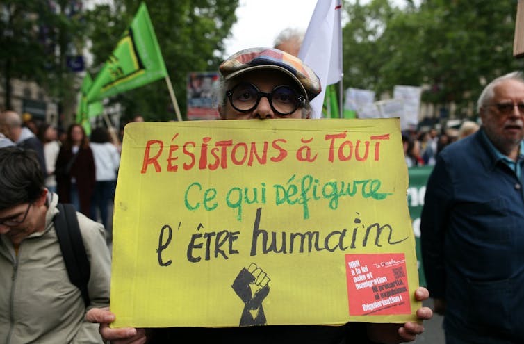 Résistons à tout ce qui défigure l’être humain. Manifestation le 15 juin 2024 du Front populaire à Paris. Jeanne Menjoulet/FlickrCC BY-NC-ND