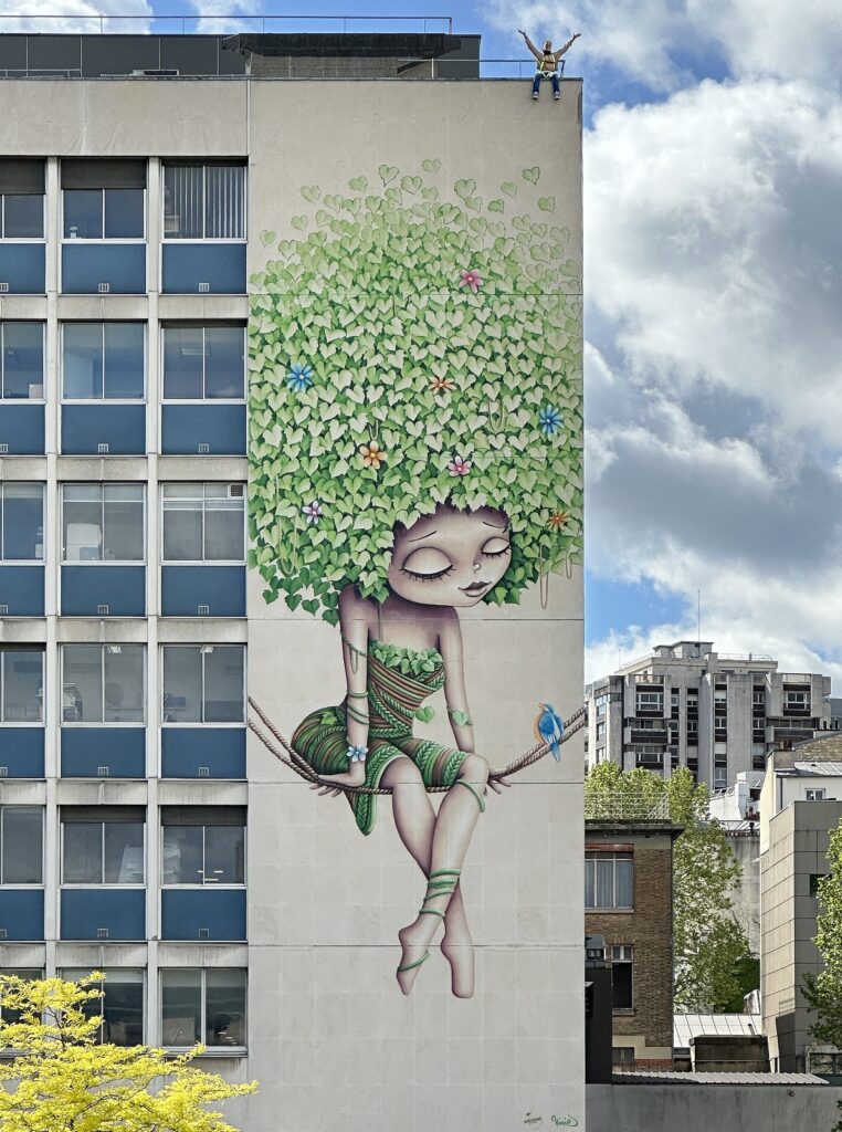 Peinte par l’artiste d’art urbain Vinie Graffiti, dont les œuvres ont illuminé les murs de villes du monde entier – dont Dakar, il y a une dizaine d’années, lors du festival Festigraff, organisé par l’artiste sénégalais Amadou Ngom, plus connu sous le nom de Docta -, cette fresque d’une vingtaine de mètres de haut a été imaginée par ces ados, placés par la justice sous la protection de l’Aide sociale à l’enfance, à la suite de violences domestiques dont ils se remettent avec le très actif concours de la formidable association Im’Pactes, dédiée à la protection de l’enfance, présidée par le docteur Céline Gréco, chercheuse, cheffe de service à l’hôpital Necker-enfants malades, spécialiste de la douleur et des soins palliatifs.