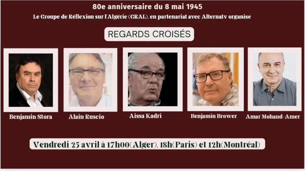 A l’occasion du 80e anniversaire du 8 mai 1945 , le Groupe de Réflexion sur l’Algérie, le GRAL, a le plaisir de vous convier à la ronde organisée le vendredi 25 avril prochain.