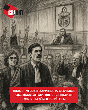 Le 27 novembre 2025 restera comme l’une des dates les plus sombres de l’histoire judiciaire tunisienne. Au terme d’une procédure disloquée, marquée par les violations les plus graves des garanties constitutionnelles et internationales, la cour d’appel de Tunis a prononcé des peines allant de 2 à 45 ans de prison, contre journalistes, avocats, opposants politiques, défenseurs des droits humains, hauts fonctionnaires et citoyens ordinaires. La séance s’est déroulée sous les cris : « Libertés! Libertés ! À bas la justice des instructions !»