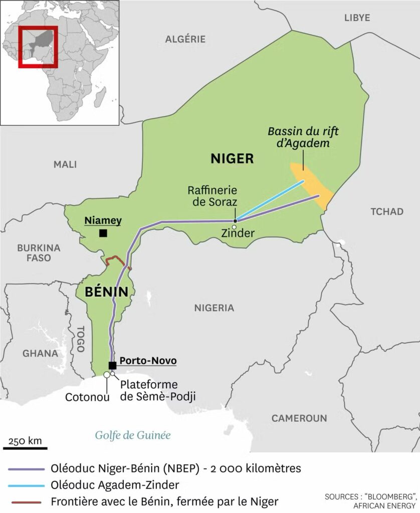 Si le Bénin est ciblé, c’est aussi pour son rôle dans un dispositif énergétique crucial : le pipeline reliant les champs pétroliers d’Agadem, au Niger, au terminal béninois de Sèmè‑Kpodji.