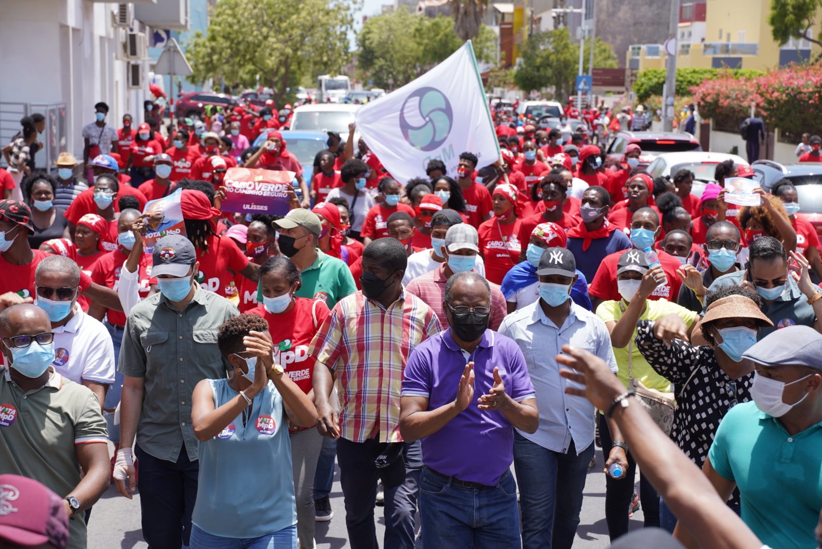 Marche en faveur du parti au pouvoir au Cap Vert, le Mouvement pour la Démocratie, à la veille de l'élection législative de 2021.