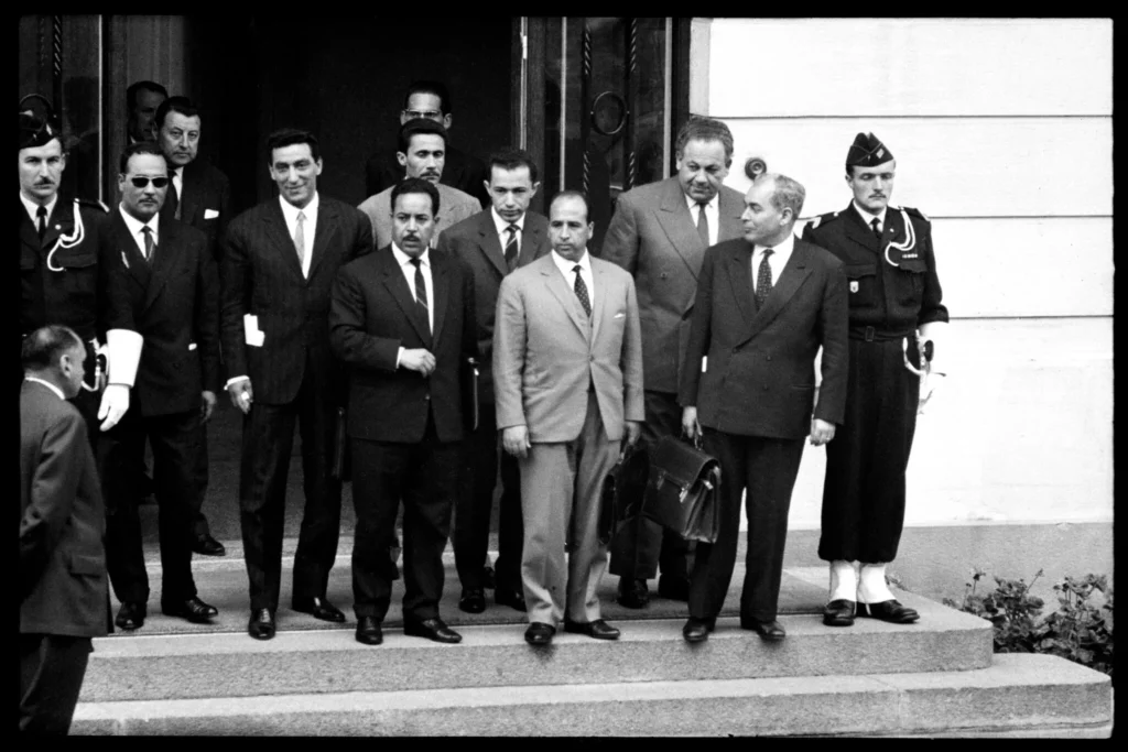 Alors que l’Algérie célébrait, le vendredi 5 juillet, l’anniversaire de son indépendance, Lyazid BENHAMI, Coordonnateur du centenaire de Krim Belkacem (en costume clair sur la photo de la délégation algérienne à Evian en 1962 ci dessus), rappelle le rôle décisif joué par ce dernier durant la guerre d’Algérie et lors des accords d’Evian.
