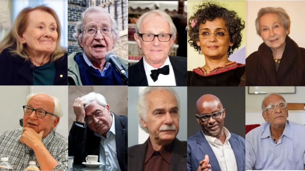 Etienne Balibar, philosophe (France) Joyce Blau, universitaire, membre des réseaux de soutien au FLN pendant la guerre d’indépendance algérienne Noam Chomsky, linguiste (Etats-Unis d’Amérique) Annie Ernaux, romancière, prix Nobel de littérature (France) Elias Khoury, romancier (Liban) Abdelatif Laabi, poète (Maroc) Ken Loach, cinéaste (Royaume-Uni) Achille Mbembe, historien et politiste (Cameroun)
