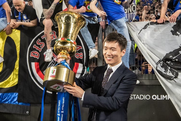 Suning Holdings Group, fondée en 1990 par Zhang Jindong, membre du Parti communiste chinois, avait pour sa part mis la main sur le club intériste en 2016. C’est le fils de Jindong, Kangyang (appelé aussi Steven et qu’on découvre sur l’image ci dessous), qui en est président. Le groupe reste proche du pouvoir, le gouvernement chinois ayant notamment récemment demandé aux prêteurs nationaux de renflouer Suning pour qu’il puisse faire face à ses problèmes financiers liés à la crise sanitaire.
