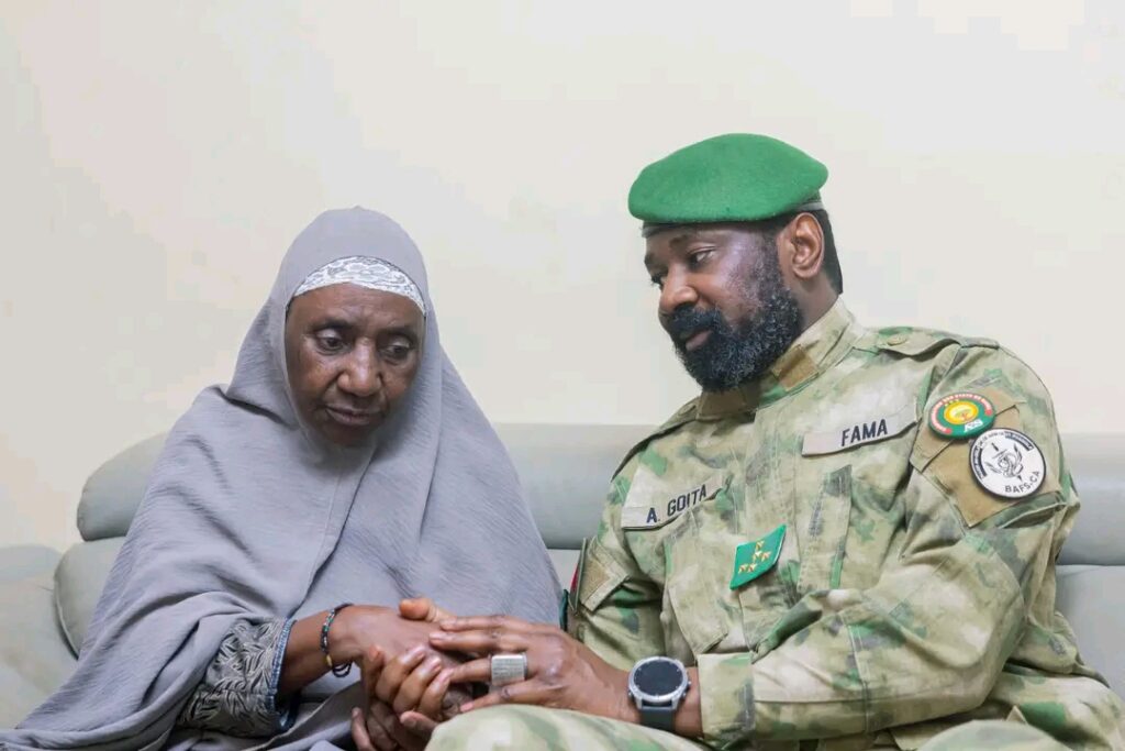 Le chef de l’État s’est ensuite rendu au CHU Bocar Sidi Sall de Kati au chevet des blessés civils et militaires, avant d’aller présenter ses condoléances à la famille de Sadio Camara. Sur cette photographie, on le voit auprès de la mère affligée de celui qui fut un ami proche et un frère d’arme des premières années sous l’uniforme, notamment sous les ordres du général Elhadj Gamou à Kidal en 2012. Selon la communication officielle, il aurait assuré à la famille « qu’il poursuivrait et parachèverait son combat pour la sécurisation de l’ensemble du territoire national. »