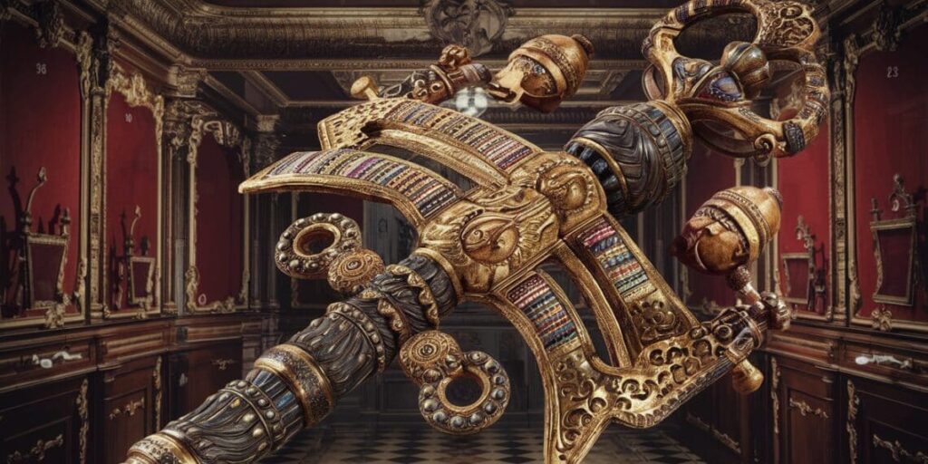 La récade est le symbole même de la royauté. Béhanzin n’aurait jamais offert son propre sceptre, qui concentre tous les attributs de sa puissance. C’est un objet sacré, inaliénable.