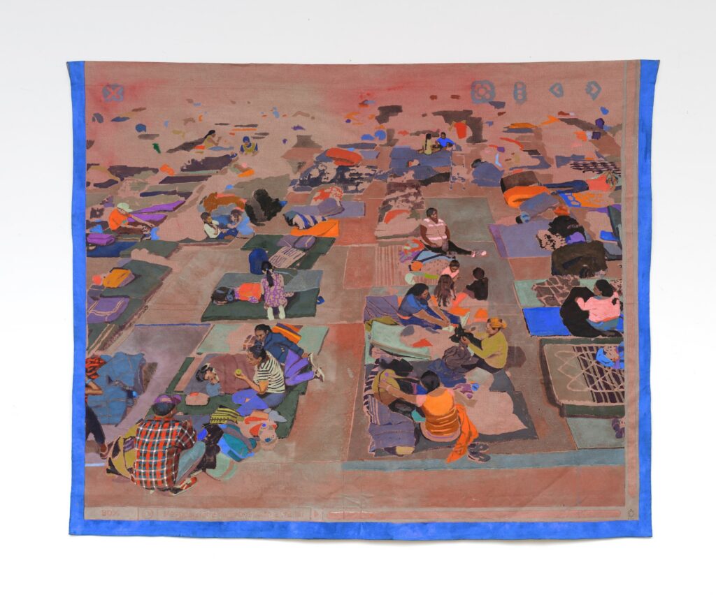Après le voyage, une nouvelle histoire commence. L’arrivée dans la zone à Paris, dans les années 60, autour des fortifications de Thiers, avec les photos de Louis Chifflot. Avec « Climbing down », la promiscuité dans les foyers avec les lits superposés du camerounais Barthelemy Togo. La solitude et la dignité de ceux qui se cachent dans les portraits d’Assaf Shosshan et les Afghans de Mathieu Pernot qui s’isolent entièrement dans leur sac de couchage d’un monde qui ne veut pas les voir. À Calais, avec les photos de Bruno Serralongue, il y a « les clandestins comme des fantômes » dans les terrains vagues de retour de leur tentative quotidienne de traversée. En provenance du Soudan, Altaher, lui, renonce à franchir la Manche après un an et demi de voyage. Dans un campement, il ne sait plus où il veut aller et Bruno Fert, dans « Refuge », saisit la manière dont son colocataire embellit leur cabane.
