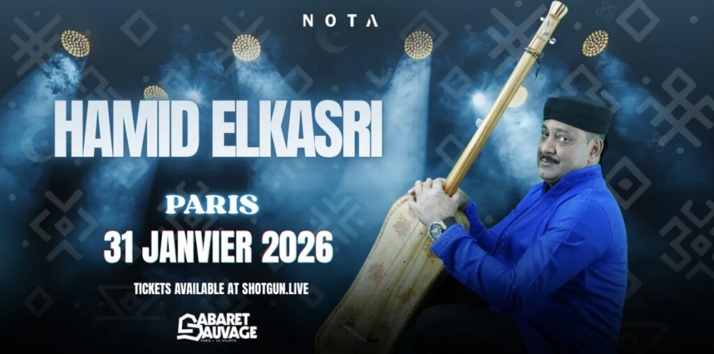 Le 31 janvier 2026, Hamid El Kasri se produit à Paris pour un concert consacré au gnawa, tradition musicale et spirituelle nord-africaine inscrite au patrimoine culturel immatériel de l’UNESCO. La date apparaît dans plusieurs agendas spécialisés des musiques africaines et figure parmi les rendez-vous marquants de l’hiver pour les amateurs de musiques rituelles.