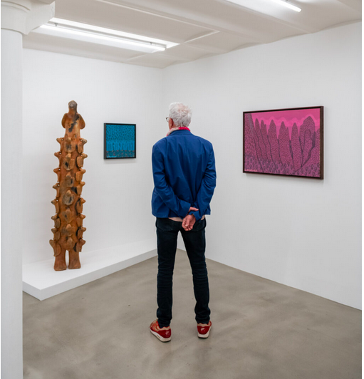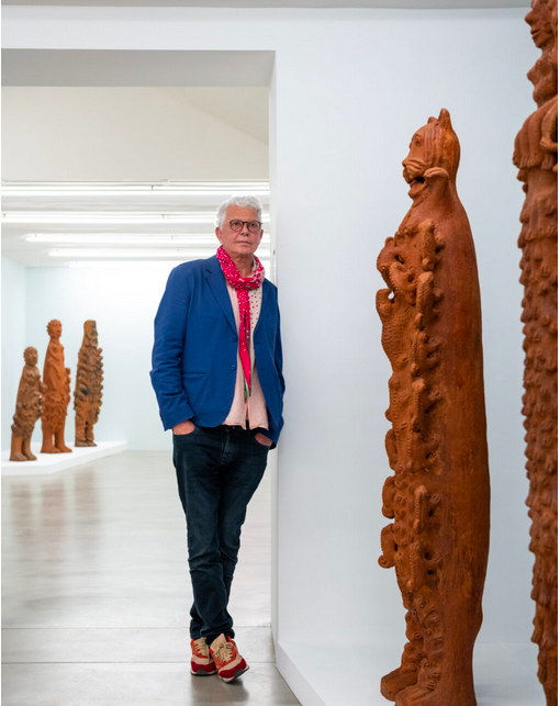 En 1989, suite à l’exposition Magiciens de la Terre, un monsieur [Jean Pigozzi] m’a abordé en me disant qu’il voulait me rencontrer. Il m’a dit : « André, c’était incroyable, je n’ai jamais rien vu de tel auparavant, ni dans une foire d’art internationale, ni dans une biennale ». Il m’a ensuite demandé quel était mon rêve. Je lui ai répondu que je voulais poursuivre mes voyages à travers toute l’Afrique et il m’a dit qu’il le financerait à condition que je constitue une collection privée pour lui. Ainsi, de 1989 à 2009, Jean Pigozzi a financé mes recherches sur l’art du continent africain – avec un accent particulier sur les cultures de l’Afrique subsaharienne – et au cours de ces deux décennies, j’ai constitué une collection de 12 000 pièces que nous avons exposées dans 100 ou 200 musées du monde entier, les plus grandes expositions ayant eu lieu à la Fondation Cartier, à la Fondation Louis Vuitton, au Guggenheim et au Musée d’art contemporain de Tokyo, etc. Et pendant 20 ans, nous avons été les seuls à montrer des pièces produites exclusivement par des artistes africains vivants travaillant en Afrique. Petit à petit, nous nous sommes aperçus que nous avions un vivier d’artistes exceptionnels, mais qu’il n’existait pas nécessairement de marché de l’art contemporain africain. Jusqu’en 2009, lorsque j’étais à la Foire de Bâle avec Jean Pigozzi et qu’il m’a dit : « André, cela fait 20 ans que nous travaillons sur cette collection, que nous soutenons ces artistes et que nous exposons leurs pièces dans les plus grands musées, mais ils n’ont eu aucune présentation dans les expositions internationales ». Je lui ai répondu que personne d’autre ne faisait le même travail que nous, que personne ne se rendait en Afrique à la recherche de ces artistes et que, si nous en trouvions un qui nous plaisait, nous achetions toutes ses œuvres. J’ai dit à Jean qu’il avait déjà environ 12 000 pièces dans sa collection, que nous avions fait 200 expositions ensemble et que je devrais probablement me mettre à mon compte pour qu’il puisse voir ces artistes représentés dans les foires d’art internationales. C’est dans cet esprit que j’ai décidé d’ouvrir ma propre galerie.