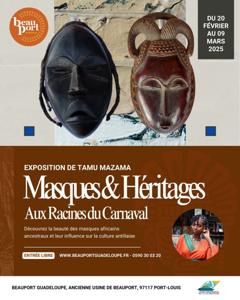 L’exposition « Masques et héritages aux racines du carnaval » , présentée à Beauport en Guadeloupe du 20 février au 9 mars 2025, explore l’influence des masques africains sur la culture carnavalesque antillaise. Une immersion dans les racines profondes d’une tradition où se mêlent mémoire, résistance et célébration.
