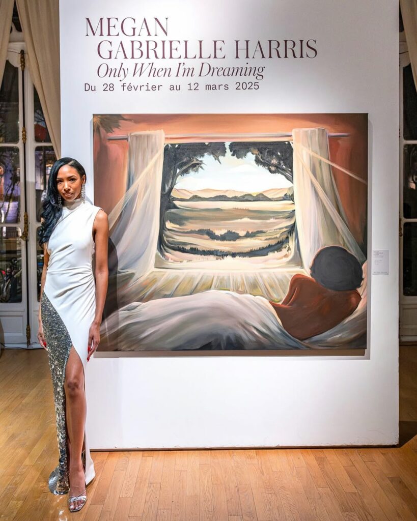 Pour sa première exposition solo à Paris, l’artiste afro-surrealiste Megan Gabrielle Harris dévoile à Artcurial une série d’acryliques inédites. « Only When I’m Dreaming » explore un univers onirique où féminité noire et paysages contemplatifs s’entrelacent dans une douce échappée.