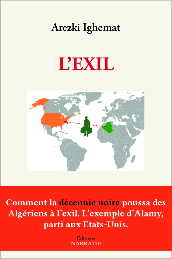 L’ouvrage du Dr. Arezki Ighemat intitulé « L’Exil » raconte l’histoire d’Alamy, un intellectuel algérien ayant émigré aux Etats-Unis au beau milieu des années 90, Paris « cette décennie Noire » (Black Decade) ou alors « Sale Guerre » (Dirty War) qui a laissé le peuple algérien fracassé.