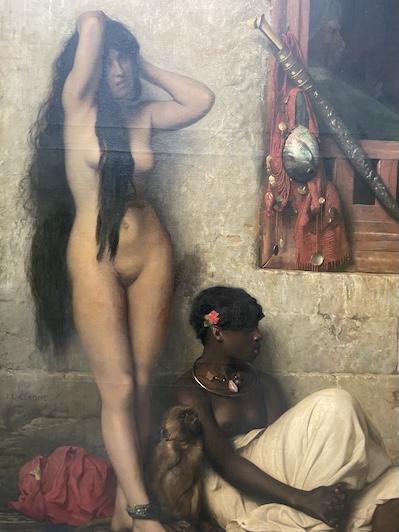 Sans d’avantage de précaution, les conservateurs présentent une peinture de deux esclaves égyptiennes dénudées réalisée à la fin du XIXe siècle au Caire pour témoigner de la vitalité de la mode orientaliste. Il y a mieux pour rapprocher les deux rives de la Méditerranée!