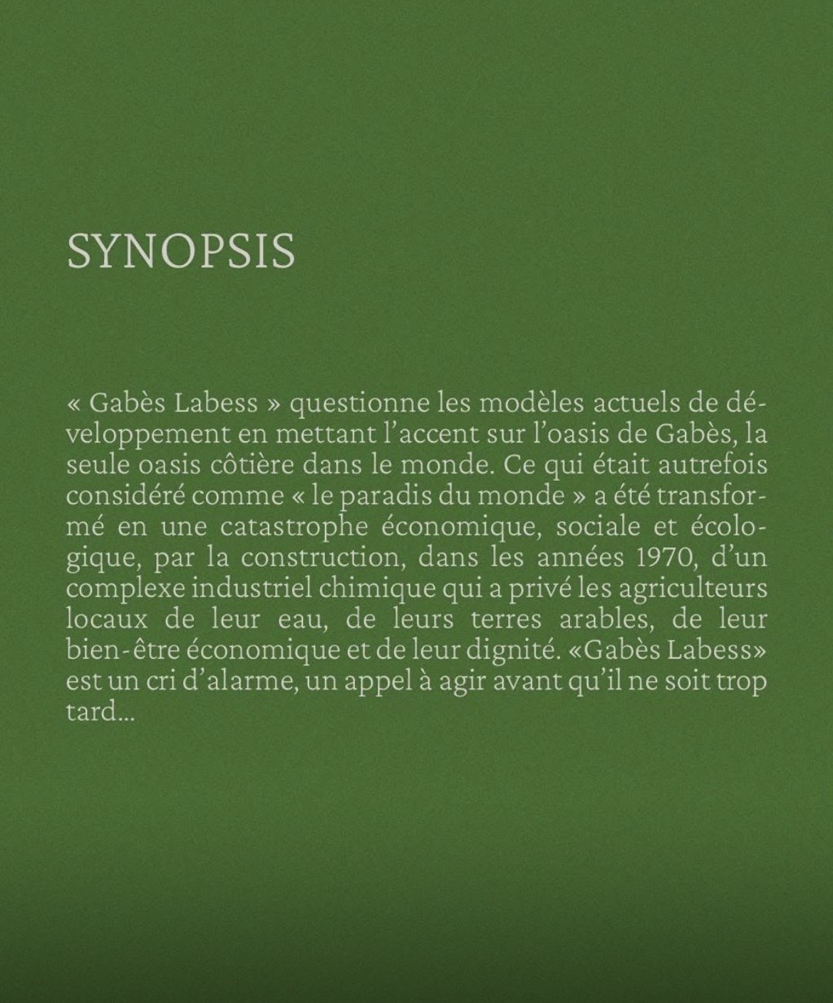 À travers cette lecture lucide et engagée, Gabès Labess s’inscrit pleinement dans une réflexion plus large sur l’écologie politique en Afrique du Nord. Longtemps marginalisées dans le débat public, les questions environnementales y sont pourtant centrales. À Gabès, l’écologie n’est ni un luxe ni un discours abstrait : elle est une question de survie, de dignité et de droits fondamentaux. Le film rejoint ainsi d’autres luttes écologiques africaines, où les populations locales paient le prix fort de stratégies industrielles pensées loin de leurs territoires.