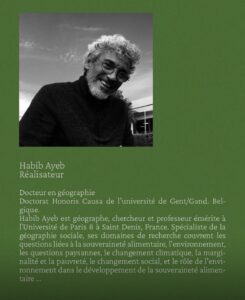 Le parcours de Habib Ayeb éclaire la démarche du film. Géographe de formation, enseignant-chercheur et cinéaste, il développe depuis de nombreuses années un travail à la croisée des sciences sociales et du cinéma documentaire. Son regard, à la fois engagé et méthodique, s’attache aux territoires dominés et aux voix longtemps absentes du récit officiel. Avec Gabès Labess, le cinéma devient un outil critique, capable de rendre visibles des réalités reléguées hors champ et d’ouvrir des espaces de réflexion collective.