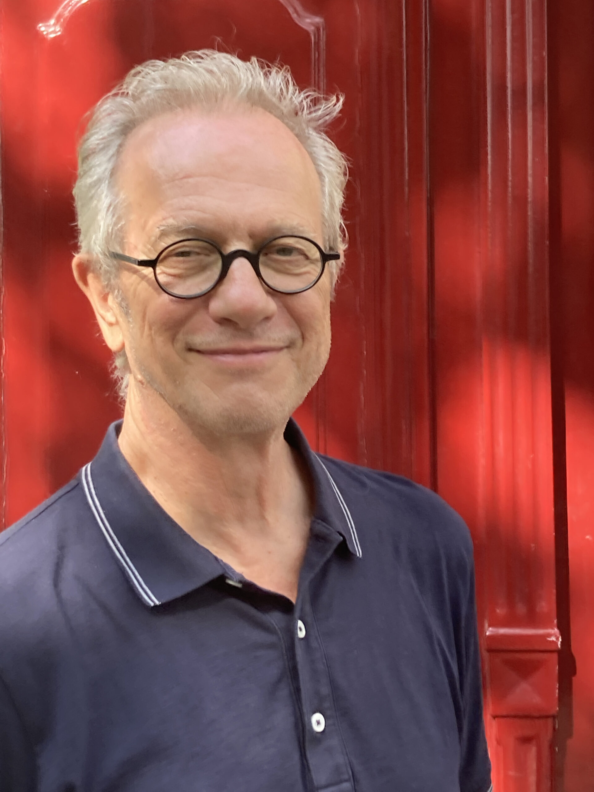 On se quitte sur la place, le soleil mange tout. Je me dis que ce serait bien de tirer son portrait. Je regarde autour de nous, l’avenue Victoria, je vois une porte rouge, qui correspond bien à cette énergie chaleureuse qui émane de sa personne. On continue à parler, il se met devant la porte. Je sors mon téléphone, je fais la photo, je le range. Il me dit : « c’est tout ? » Je lui montre la photo : « c’est bien moi ».