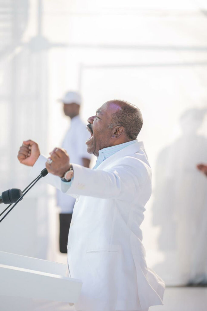 A ses partisans et aux très nombreux figurants payés 5.000 francs CFA (un peu plus de 7 euros), Ali Bongo tout de blanc vêtu comme le veut le codes vestimentaire de son parti a lancé : « j’ai besoin de vous du P.D.G., (…) pour transformer le Gabon ».