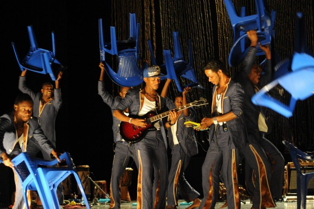 L’orchestre congolais composé d’un xylophone, de percussions, de likembes (piano à pouces portatif) et d’un balafone, est dirigé par une guitare électrique maniée avec brio par le chef d’orchestre Rodriguez Vangama. Une guitare acoustique a du s’égarer dans ce tumulte symphonique. Les voix modelées de Russell Tshiebua et Bule Mpanya qui accompagnent l’ami Kakudji agissent comme par magie. Les visages sont tout sourire pendant la danse ou le chant, pleins d’allégresse et tempérés par l’ironie. « L’exubérance » est revendiquée par la compagnie belge « Les Ballets C de la B » à laquelle appartiennent ces musiciens.