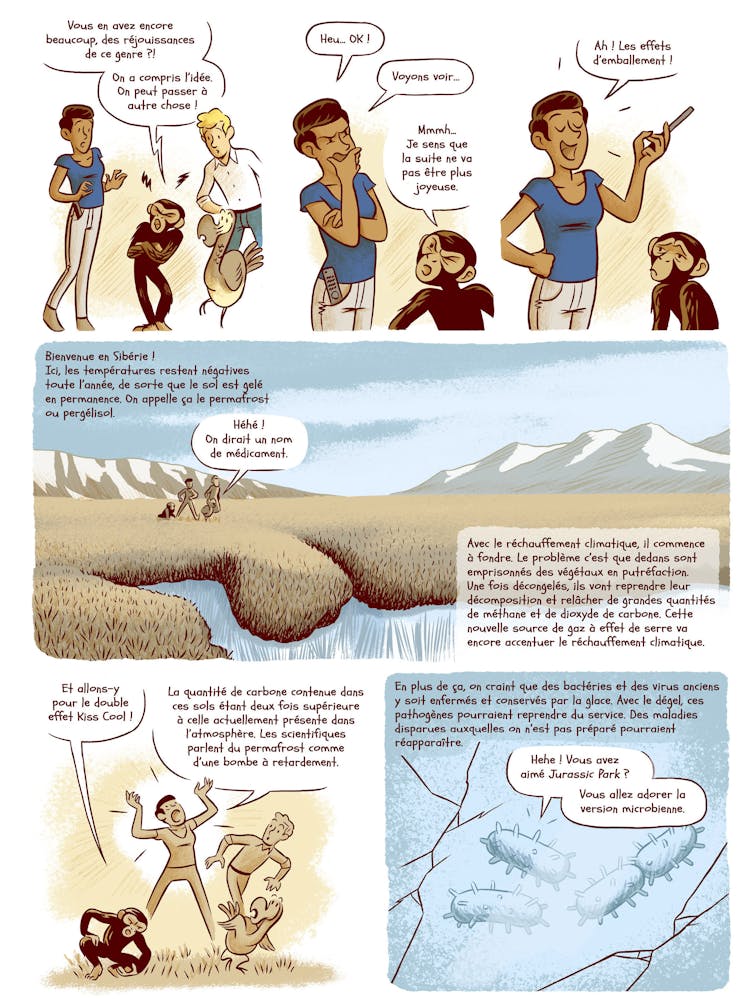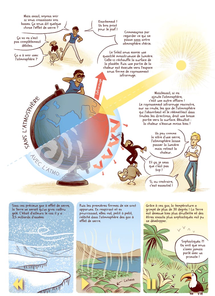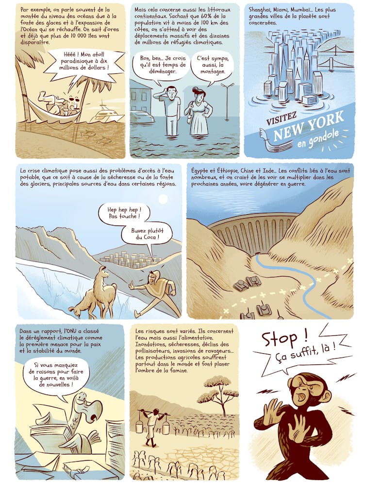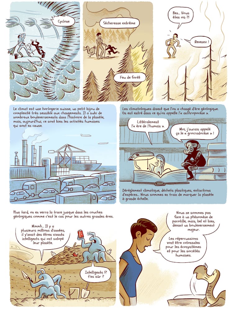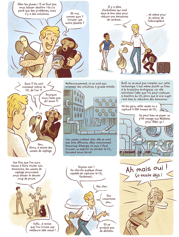 On décortique les raisons profondes qui empêchent les sociétés humaines d’agir en faveur de l’environnement. On décrypte les stratégies de désinformation et de manipulation mises au point par les industriels et les climatosceptiques. Le tout avec humour et légèreté, mais sans culpabilisation, ni naïveté. En n’oubliant pas de citer les motifs d’espoir et les succès de l’écologie, car il y en a !